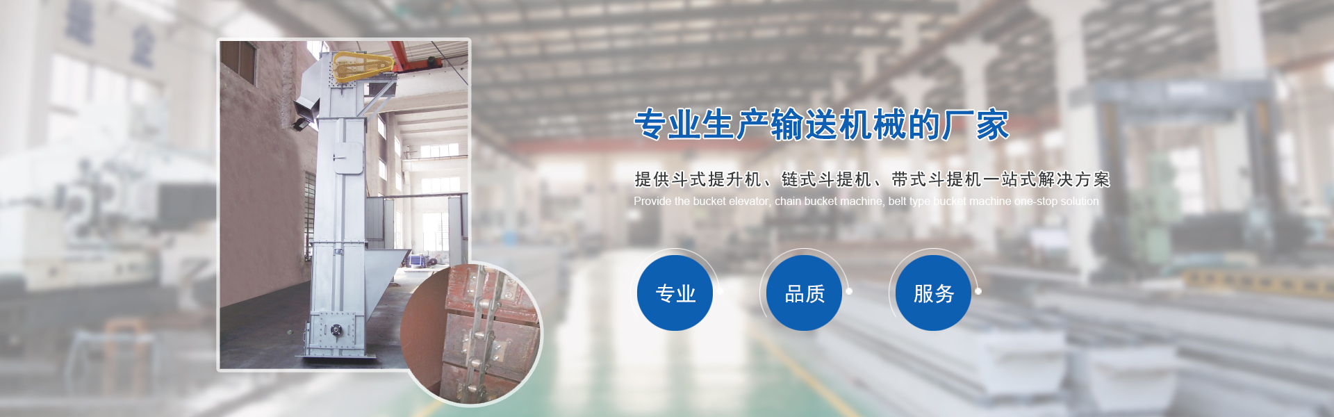 • 主要產品有各種型號的斗式提升機、鏈式斗提機、帶式斗提機、螺旋輸送機、刮板輸送機、鏈斗輸送機等;